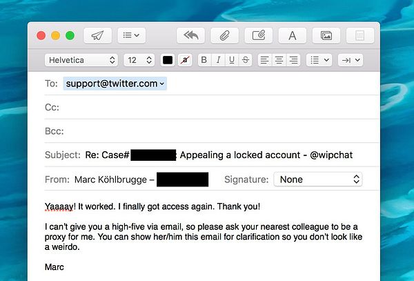 send thank you email to twitter #wip