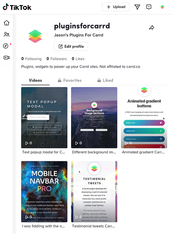 Uploaded plugin videos to Tiktok - www.tiktok.com/@pluginsforcar… #pluginsforcarrd