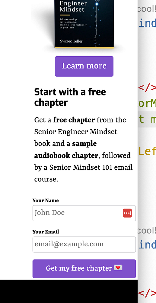 put signup form in floaty sidebar #seniormindset