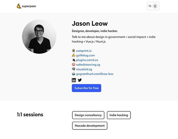 Updated Superpeer profile to offer micro-consulting sessions at US$150 a pop (30min) for govdesign and US$99/30min for indie hacking/nocode dev -