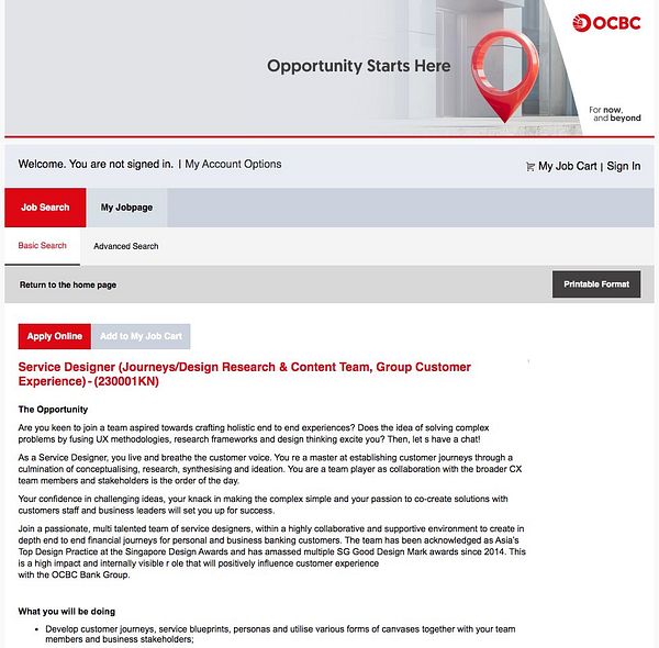 Applied for Service Designer position at OCBC Bank - whatever it takes to feed the fam and stay in the game -