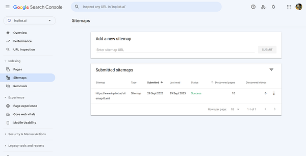 Google Search Console list sitemaps successfully #inpilot