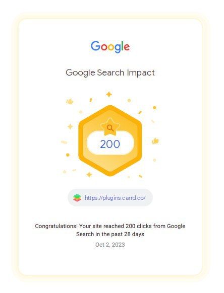 Google Search Impact Sept report - 200 views in past 28 days. Oct was 180, so I guess it improved?? πŸ€·β€β™‚οΈ #pluginsforcarrd
