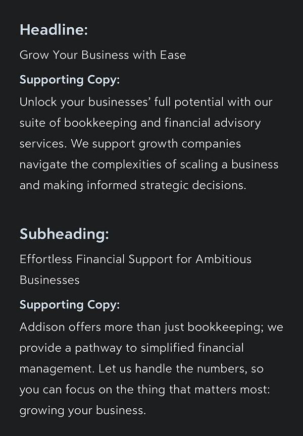 work on copy for new landing page #addison