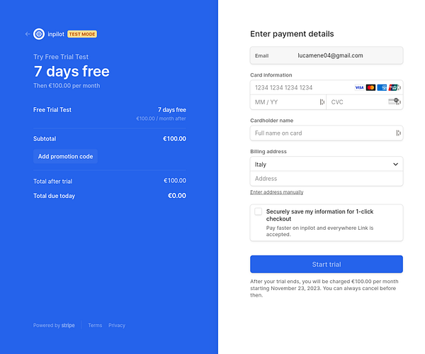 configure free trial code #inpilot
