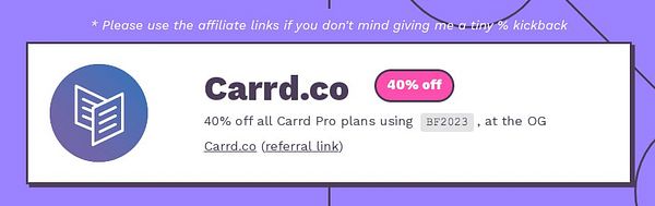 Added referral/affiliate links to Blacck Friday site (blacckfriday.carrd.co) and offered both normal links and affiliate links to give users a choice #pluginsforcarrd