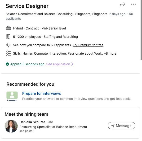 Applied for Service Designer for a Fortune 500 company via Balance Recruitment and Balance Consulting -