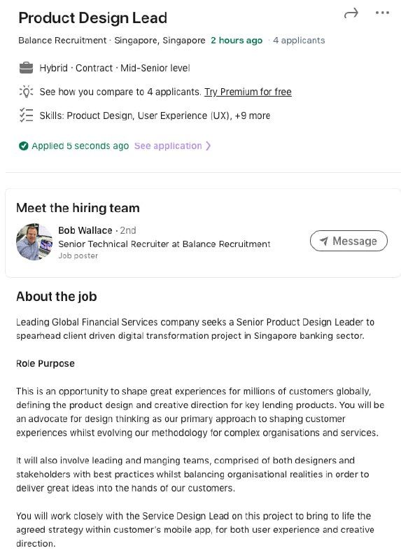 Applied for Product design Lead for a leading global financial services company via Balance Recruitment -