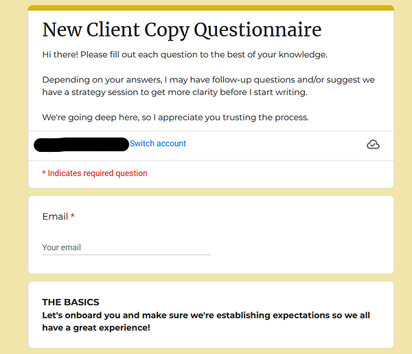 created a new client questionnaire for copywriting projects + sent to 3 new clients (happy to share if people want to steal my questions!)