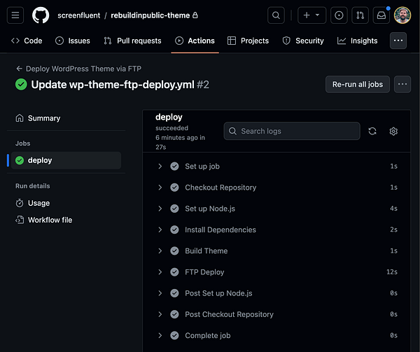 OMG! As a coding noob I just made initial setup with Github Actions to deploy my (future) wordpress theme #rebuildinpublic
