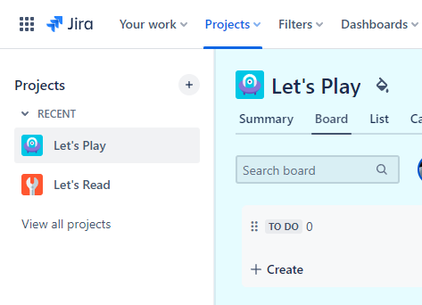 Created Jira projects for two of my app ideas.