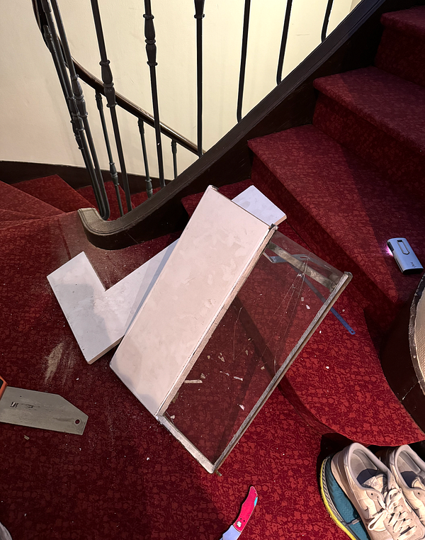 Replace broken glass with wood on attic window that broke due to recent wind and rain (waiting for a brand new window) 🥲 #life