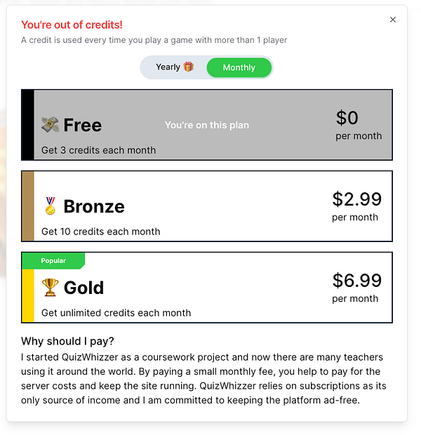 implement credits pricing