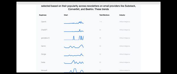 made a little table on the landing page with the latest 10 trends in the database for newsletterscan #sponsorgap