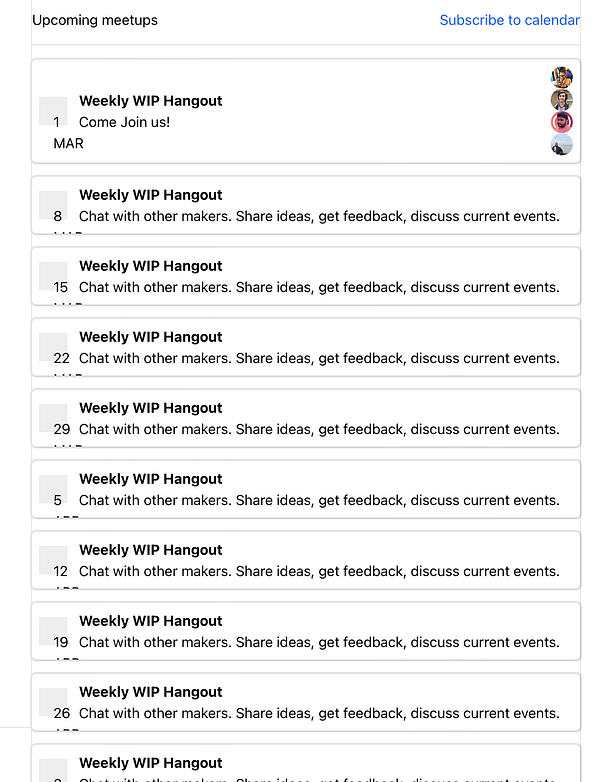 Pre-schedule WIP weekly hangouts with @rpish wip.co/meetups #wip