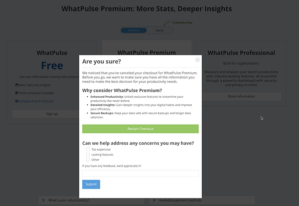 catch abandoned checkouts and add an additional nudge #whatpulse