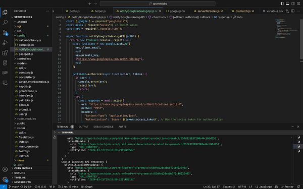 implemnted google indexing api to see if i can get more jobs to google #sportstechjobs