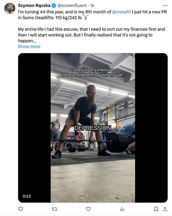 Posted on X sharing my journey from being weak af to lifting 110kg twitter.com/screenfluent/stat… #rebuildinpublic