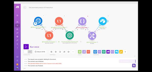 created a web crawler to get all promoted products from producthunt landing page and save data into my airtable. Then once a day data gets saved in