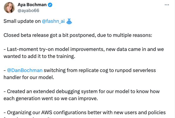 Tweet about #fashn updates after a while of not building in public