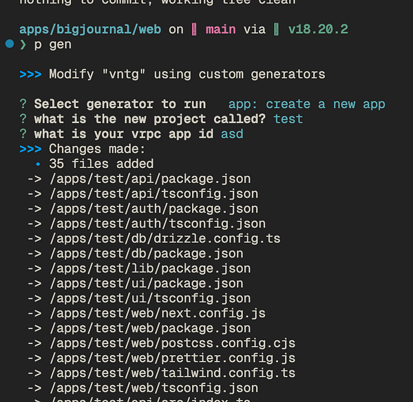 added a turbo generator to my vntg monorepo for scaffolding new cross-platform apps quickly πŸš„ (details in the comments)