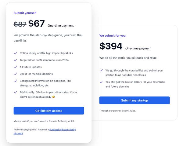 since many buyers thought I'll create the backlinks for them I clarified the offer with a second tier, sending the sales to SubmitJuice once they happen