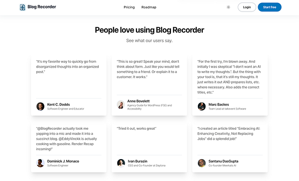 added more testimonials to the site #blogrecorder