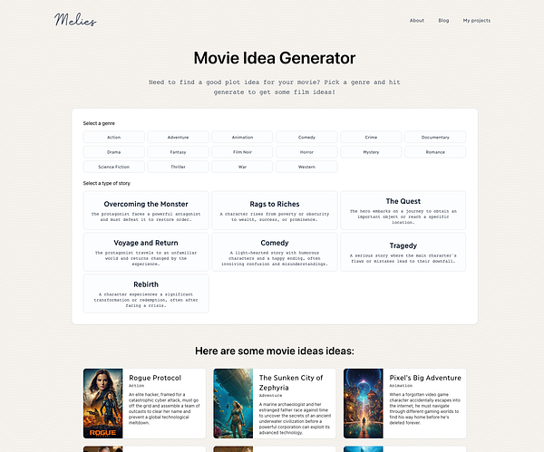 Added movie idea generator #melies melies.co/movie-idea-generator