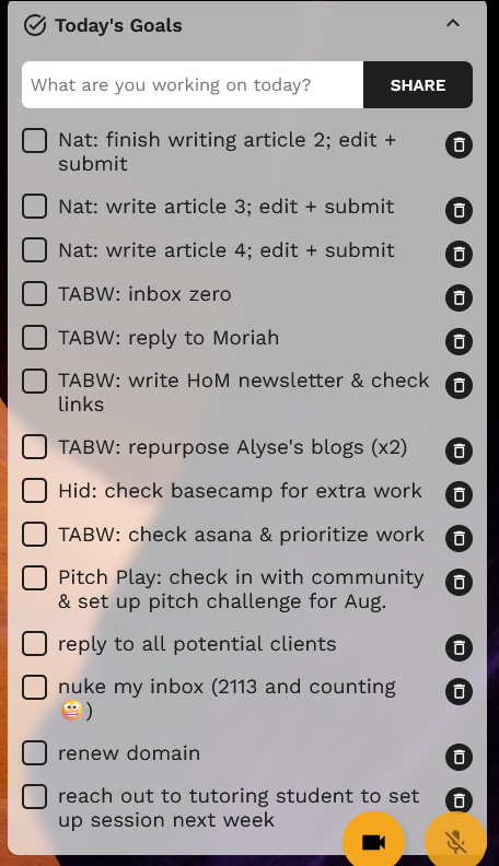 make a client task list to do tonight & tomorrow. more will be added once I go into the PMs to acknowledge the impossible work load, and my goal is to finish ALL non-recurring client work by EOW
