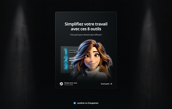 Publish a new LinkedIn post on “Simplify Your Work with These 8 Tools” for #designavecjuuu