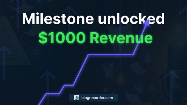 Had biggest revenue day to date ($550 on same day) and crossed $1000 total revenue and $200 MRR #blogrecorder