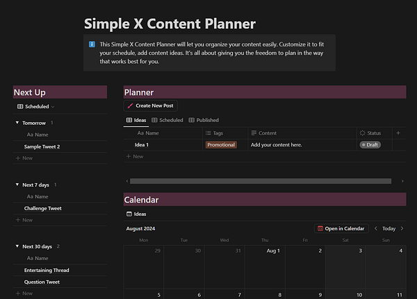 Create X Content Planner Notion template as a complement of today's newsletter edition on Twitter's Reply Game #upgroves