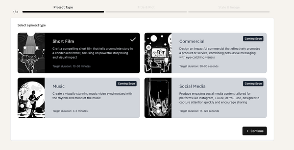 Project type selection with illustrations #melies