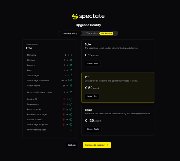 New UI: implement new upgrade flow with built-in comparison between plans to (hopefully) increase conversion #spectate