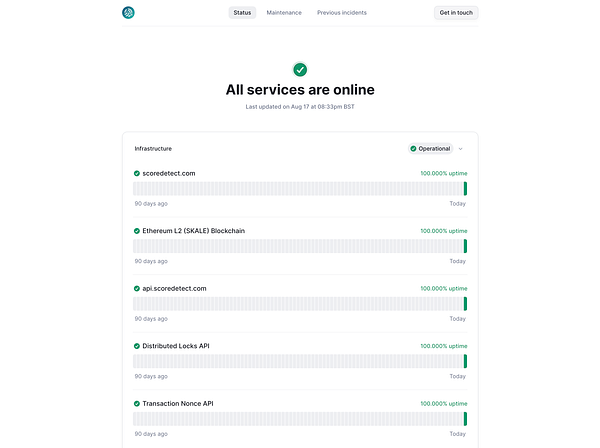 Add status page for transparency with API uptime #scoredetect