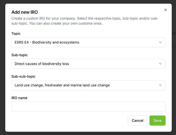 Implemented a feature to add custom IROs in their assessments #materialitymaster