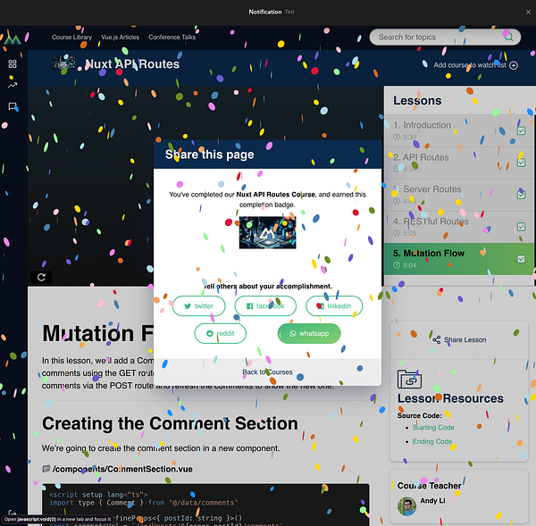 Done with Vue Mastery's Nuxt API Routes course #namemybaby π₯³ Time to get this party going! π€ Honestly, for the first release, I think I will just write on json files instead of creating an sql database right from the beginning.