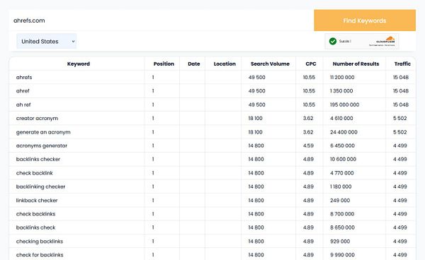 Advancing on sql queries and frontend to display best keywords that a site is ranked for in google and showing estimate traffic