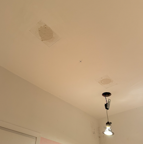 Apply first layer of plaster to fill holes left by previous light fixtures #life