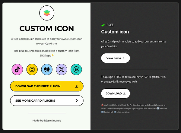 Published custom icon Carrd plugin to mothership - plugins.carrd.co/#customicon #pluginsforcarrd