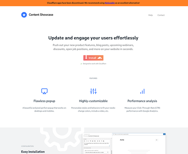 Redirect old contentshowcase.app project to #noticeable due to Cloudflare apps sunset.