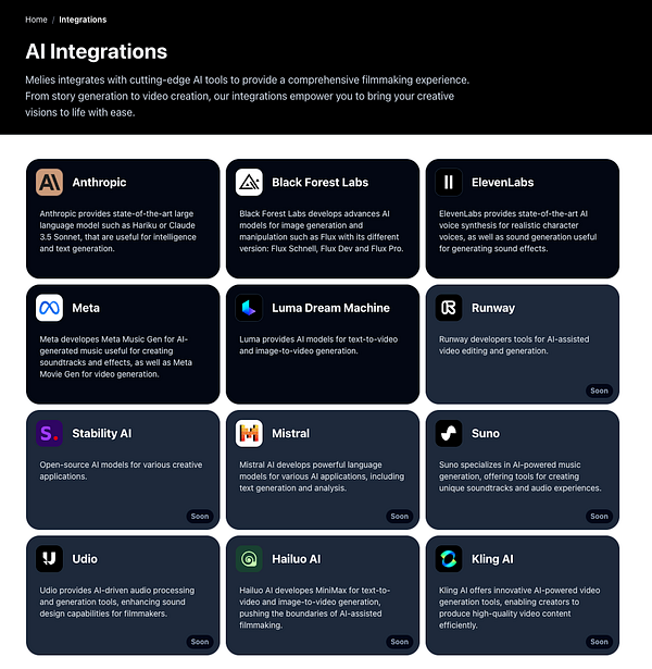 Integrations page #melies