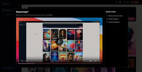 Help modal with video walkthrough #melies