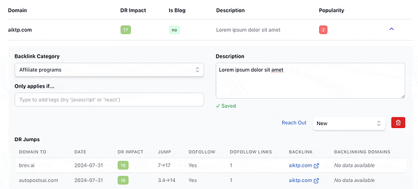 Since there are many "attributes" to backlinks I added a tagging field for my data entry area #seokickstarter