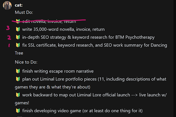 knock out more of the to-do list. I HAVE TO get through 1 & 2 at the minimum in the next 15 hours or face some nasty consequences