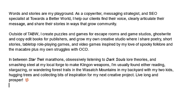 wrote a little bio for myself for a marketing agency I freelance with #freelance