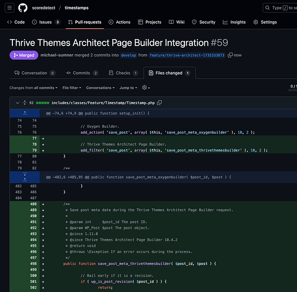 [client request] Add Timestamps for WordPress integration for Thrive Themes Architect Page Builder #scoredetect