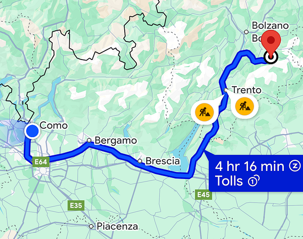 Travel 400km by car: Como → Garda → Dolomites (Predazzo) #life