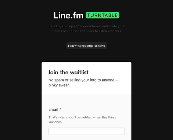 #linefm turntable singup page