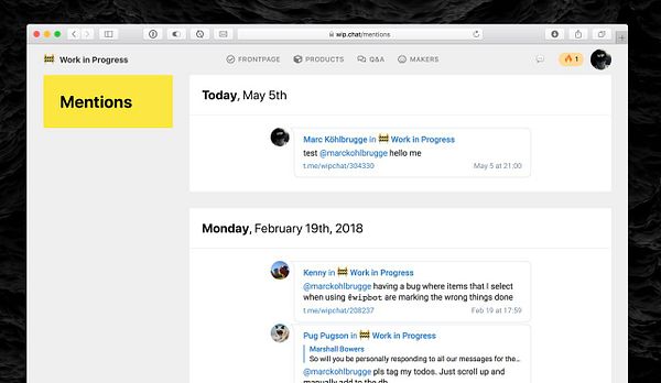 add wip.chat/mentions page to see most recent chat mentions #wip